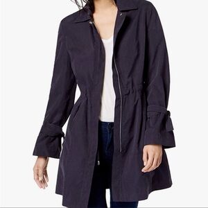 MAISON Jules Navy Tie Sleeve Lightweight Zip Up Trench Coat Jacket - Size Large