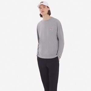 MAISON KITSUNE Men's Fox Head Patch Long Sleeve Tee-Shirt Size S In Gray