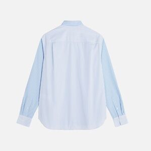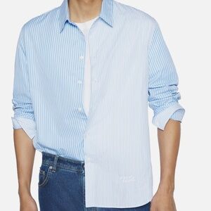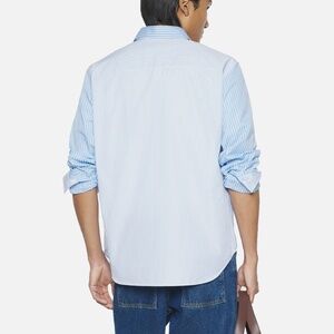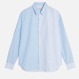 MAISON KITSUNE Mens Shirt MEDIUM Blue Patchwork Stripes in a Relaxed Fit - NWT