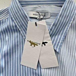 MAISON KITSUNE Mens Shirt Medium Blue Patchwork Stripes Relaxed Fit NEW NEW