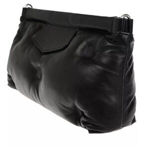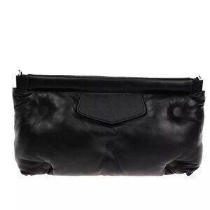MAISON MARGIELA Logo Glam Slam Chain Clutch Hand Bag Leather Black Silve 40RF146