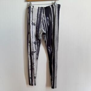 Details: Matching Tank top & leggings set in an eclectic gray scale animal and nature/tree prints. Tank top has a round neckline and hi-low hem with side slits. Leggings are stretchy with an elastic waistband. Made in Italy. Rare find as a set!