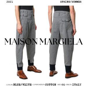MAISON MARGIELA S/S 2021 Navy White Cotton Blend Stripe Pants