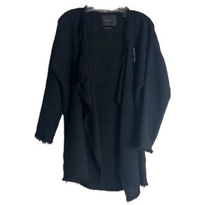 Cool cardigan by Maison Scotch for Scotch & Soda. Black with oversized fringe neckline.