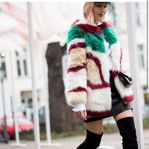 MAISON SCOTCH & Soda Faux Fur Colorful Coat Sz OS S M Winter Festival Concert