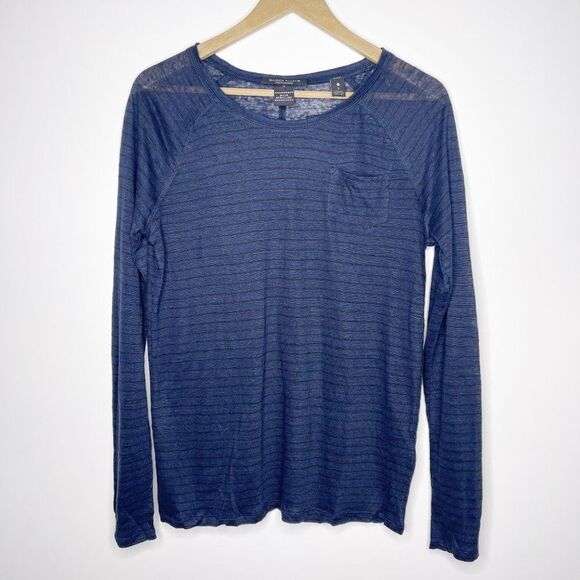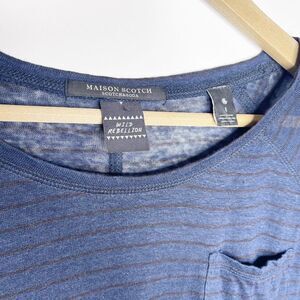 MAISON SCOTCH SCOTCH & SODA Linen Stripe Long Sleeve Blue Black Top Size…
