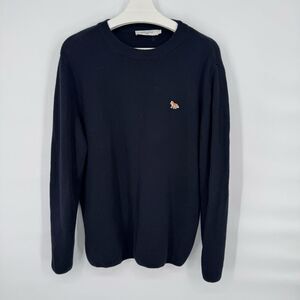 MAISON KITSUNE Baby Fox Patch Loose Pullover Sweater in Navy Wool Cotton Small