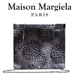 MAISON MARTIN MARGIELA Silver & Black Metallic Printed Handbag Large Clutch