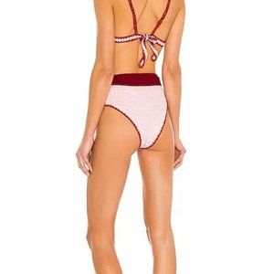 Maiyo x Natalie Off Duty Naomi Bikini Set in Pink. - size S (also in M) Maiyo x Natalie Off Duty Naomi Bikini Set in Pink. - size S (also in M) 100% cotton. Hand wash. Back tie closure. Unpadded. Enamel brooch shoulder accents and detachable waist belt. Crochet knit fabric. Item sold as a set. Imported. MIYO-WX9. NAOMI.