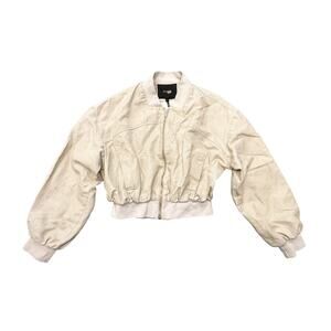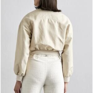 MAJE Balimi Sable Beige Linen Full Zip Bomber Jacket Size 38