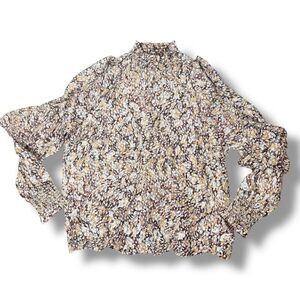 MAJE Cold-Shoulder Printed Metallic Fil Coupé Top Long Sleeve Ruffle Blouse Sz 3
