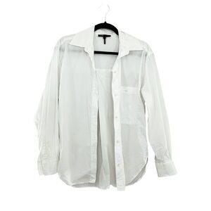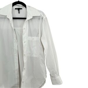 MAJE Cotton Poplin Pearl Button Oversized Button Down Shirt White Sz S