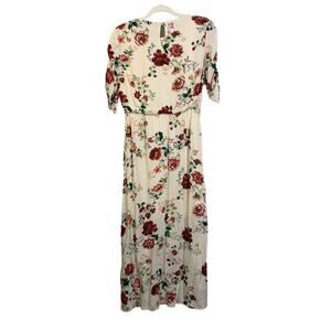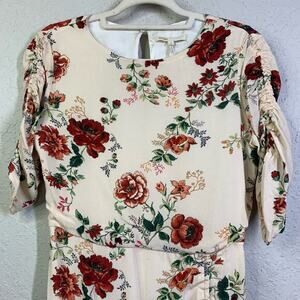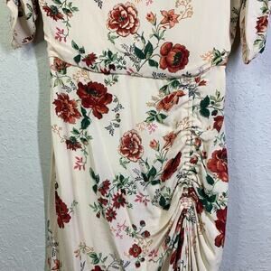MAJE Dress Rondi Midi Floral Viscose Crepe Ruched Sleeve and Slit Cocktail 2