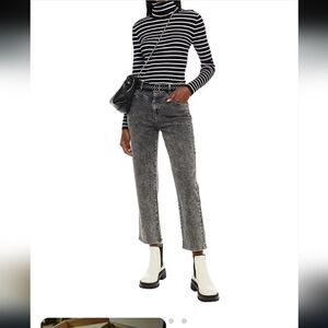 MAJE First Stone Cropped belted high-rise straight-leg jeans