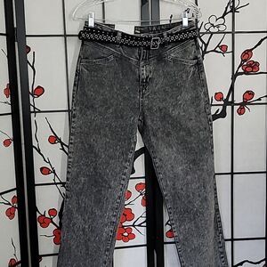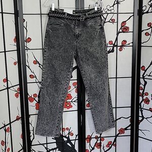 Cropped belted high-rise straight-leg jeans