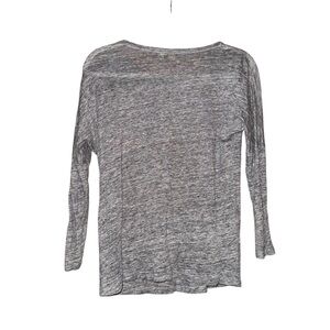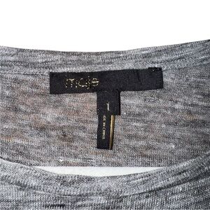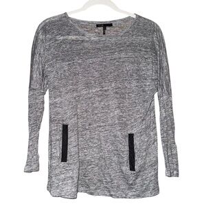 MAJE Women’s Gray Linen T Shirt Goat Leather Trim Pockets 3/4 Sleeves Size Small