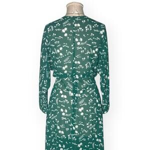 MAJE Green Floral Midi Dress Surplice Neck Wedding Cocktail Party Romantic Boho