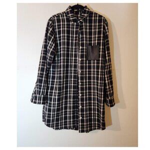 MAJE Grunge Leather Trimmed Plaid Flannel Shirt
