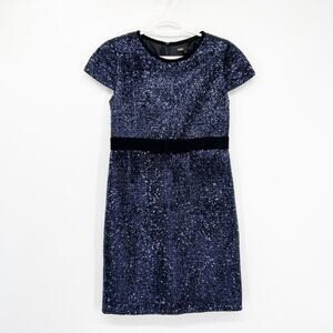 MAJE Ketsia Midnight Blue Sequined Tulle Dress Velvet Bow Small
