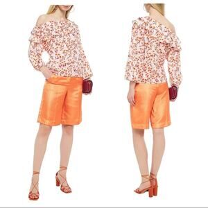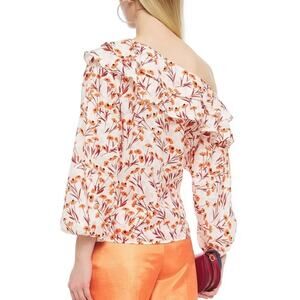MAJE Laurane One-shoulder Ruffled Metallic Fil Coupé Floral-Jacquard Top size 2 New With Tags.