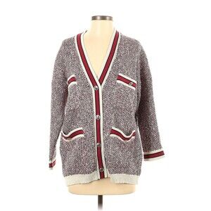 MAJE Mapada Red White Knit Button-Front Tweed Cardigan - 1 (Small)