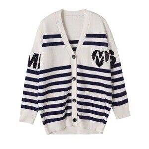 MAJE Murmur Embroidered Wool Blend Cardigan Ecru Thick Open Front Size 1 Small