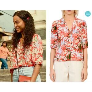 MAJE PARIS $298 Tropical Beach Summer Floral Blouse Top Shirt – Size US Large