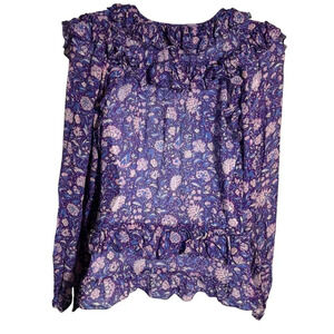 MAJE Purple Dahlia ruffle long sleeve top size 3 Large ties in front floral