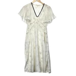 MAJE Racky Star Printed Ruffle Midi Dress Ivory Black Celestial Whimsigoth Sz XS