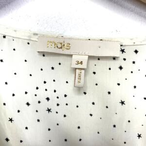 MAJE Racky Dress Sz XS Star Print Ruffle Midi Ivory Black Celestial Whimsigoth