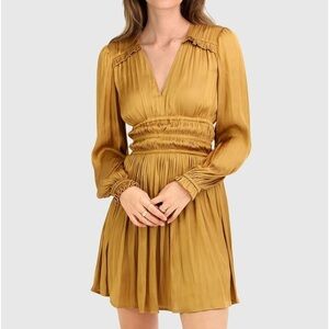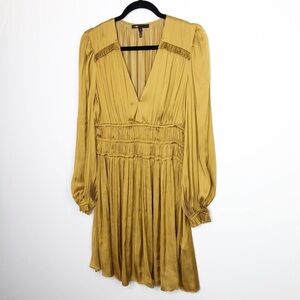 Maje Rianne satin smocked with ruffle detailing mini dress with rouged detailing.