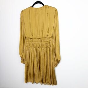 MAJE Rianne satin smocked with ruffle detailing mini dress