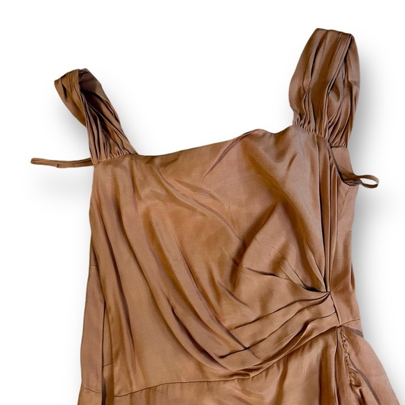 MAJE Routila Wrap Effect Cold Shoulder Midi Dress in Terracotta Size 1 (Small)