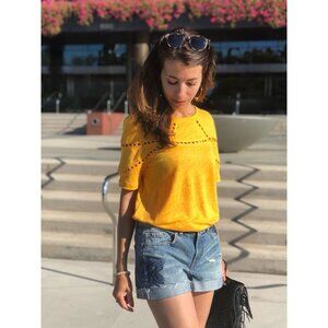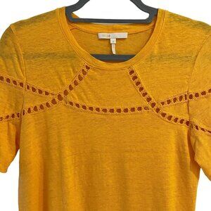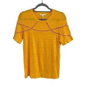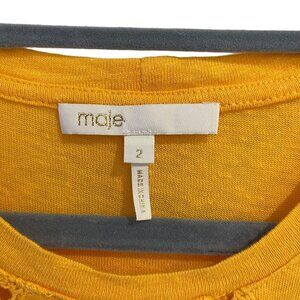 MAJE Size M Turan Knit Linen T-Shirt Cutouts Relaxed Fit Embroidered Trim
