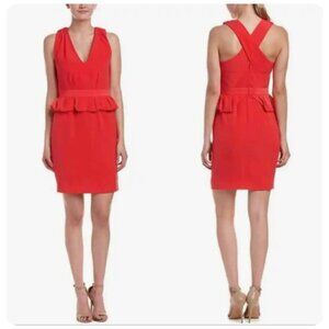 MAJE Structured Peplum Robe Dress in Framboise Red Formal Women's Sz 1 (Small)