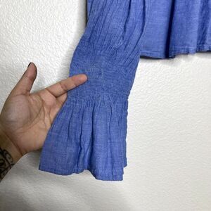 MAJE Top Medium Blue Lova Bleu Off Shoulder Smocked Blouse Long Bell Sleeve