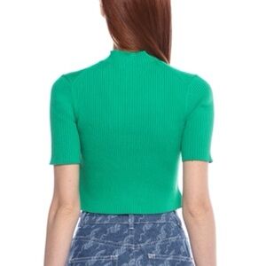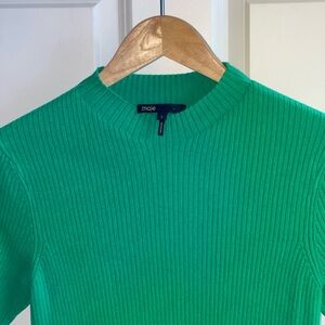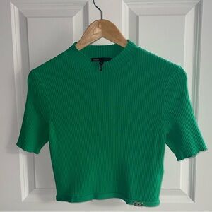 MAJE Vibrant Green Ribbed Knit Crop Length Top Faux Stretch Size 3 = Large