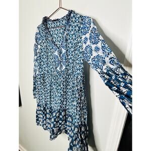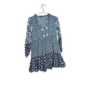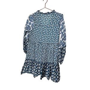 MAJE Women's Blue Patchwork Print 100% Cotton Crewneck Shift Dress Size 40