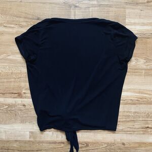 MAJESTIC PARIS L Black Super Washed Soft Touch Open Tie Front Short Sleeve Top 4
