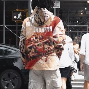 MAJESTIK F1 RACER TAPESTRY JACQUARD LONG SLEEVE HOODIE (BEIGE)