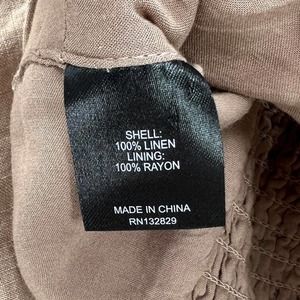 MAJORELLE Conway Top Shirt Womens XS Brown Linen Puff Sleeve Tie Front Crop