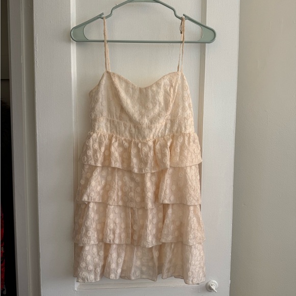 Chic ivory dress with delicate ruffles. Ideal for elegant events.