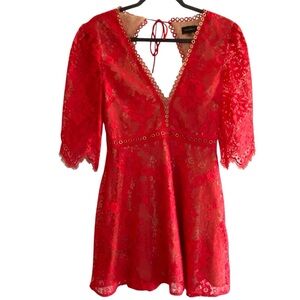 MAJORELLE Louisa Lace Mini Dress - Scarlet Red M