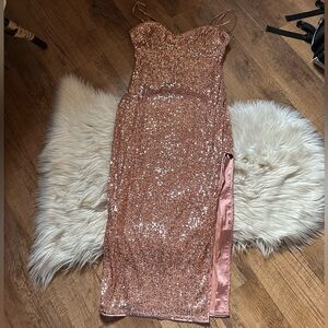 MAJORELLE Maizie Midi Dress In Rose Gold Sequins