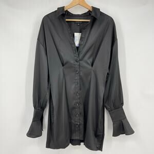 MAJORELLE | NWT Maritza Shirt Dress in Black Satin Mini M AS IS