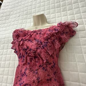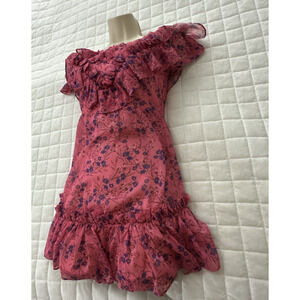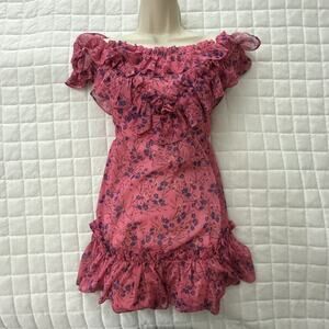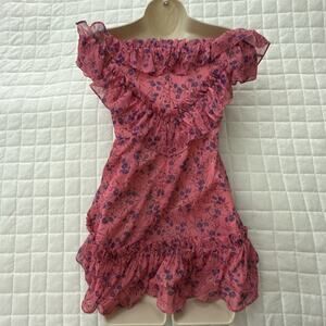 MAJORELLE Women Dress XXS Pink Floral Mini Grace Ruffle Chiffon Feminine Romance