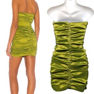 MAJORELLE Kaci Ruched Strapless Mini Dress Lime Green XS
