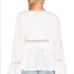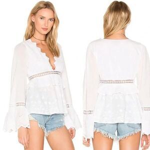 MAJORELLE Western Ridge Bell Sleeve Lace Deep Plunge Cotton Blouse White…