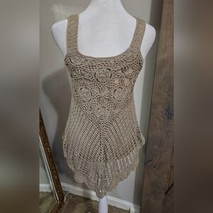 MAK BY MAK B Asymmetrical Crochet Top In Tan/beige. Size Small