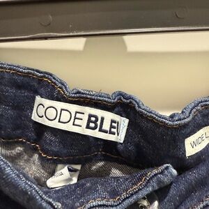 Chic wide-leg jeans by Code Bleu. Dark blue hue. Flattering flare style.